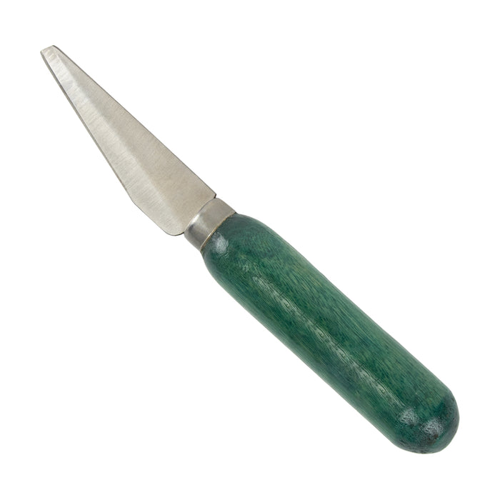 Basic skiving knife for cutting lightweight leather. Wood handle.