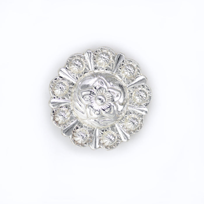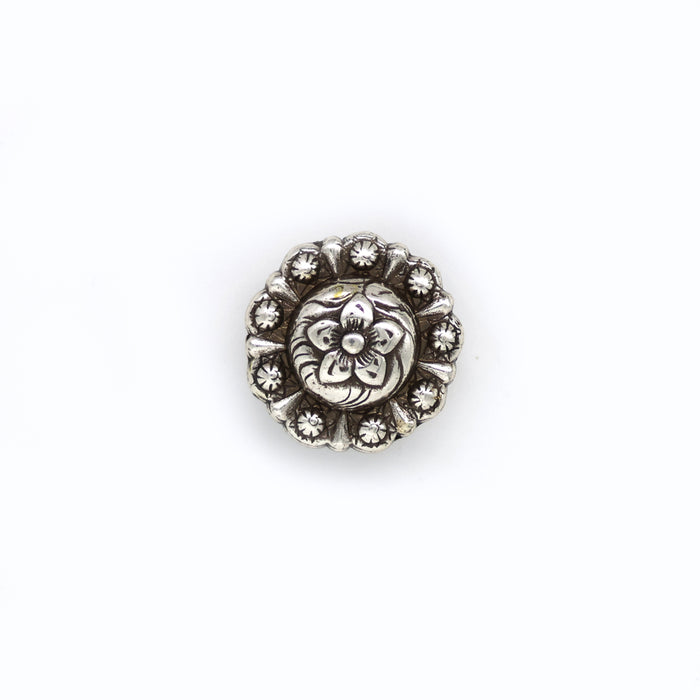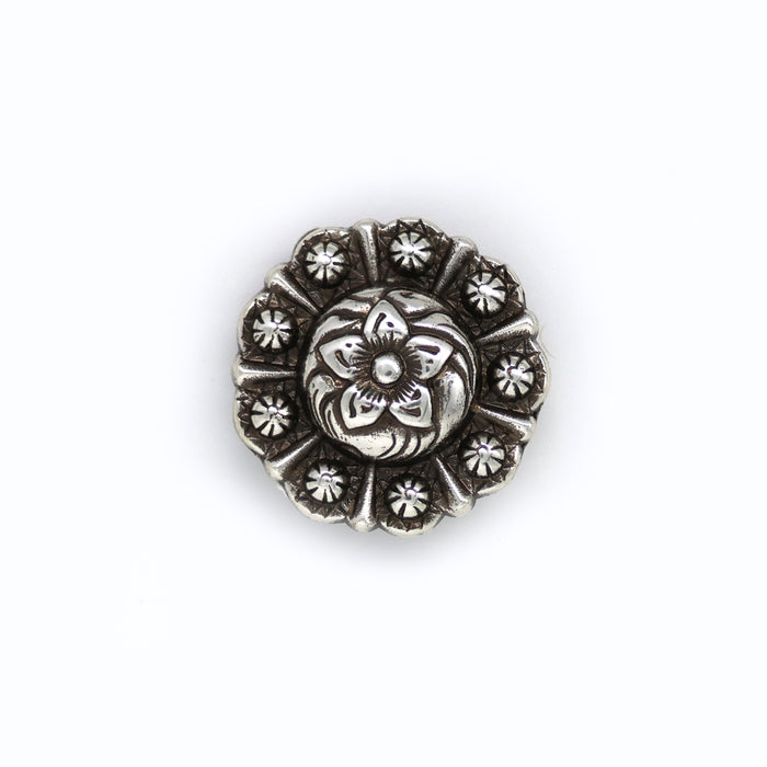 These berry rivet back concho with fine engraved details. Rivet back design that is easy to install. Available in 3 sizes and 3 finishes.