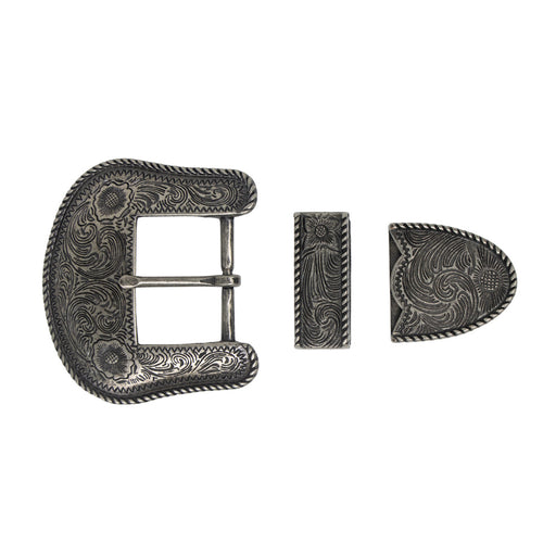 Round rope engraved 3 pcs buckle sets with fine engraved details.