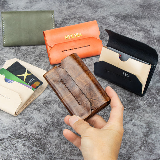 Product description Create your own slim leather card case with this easy kit. The fold-and-tuck closure keeps it secure, while minimal ...