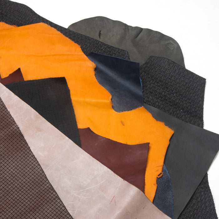 This Assorted Designer Cut Piece Bundle is a great value! You'll get a variety of high quality bag and accessory leather cut pieces to try out at an affordable price. Each bundle contains just about any leather you can imagine, from pebble grains, metallic, cross grains, smooth, nubuck to patent leather. All the leathers are hand picked to ensure as many variety and colors as possible are included in every bundle. You will get 4~6 pieces of leathers. Pieces will range between 5-10 sq. ft. each. Total of 35~40 sq. ft. per bundle.