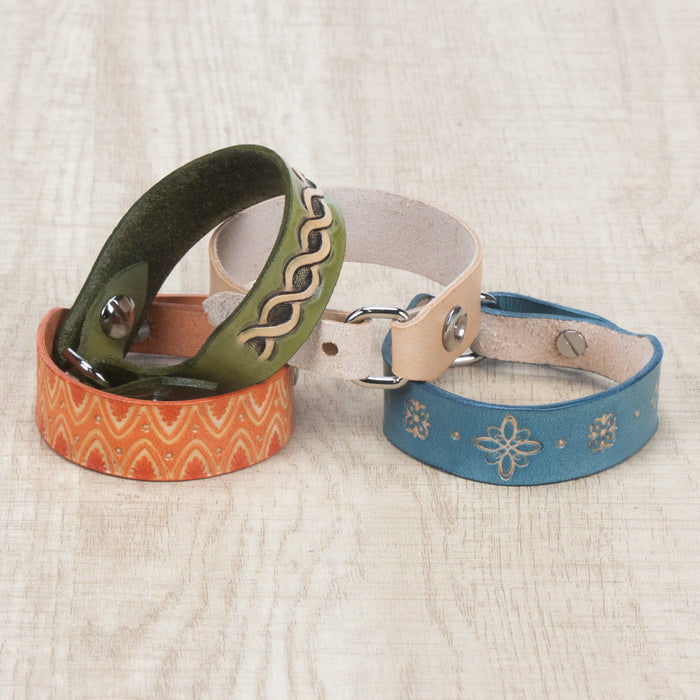 A classic adjustable leather bracelet ready for your touch—stamp names, patterns, or initials for a personal twist. Finished with a sleek button stud for easy wear. Great as a gift or a DIY friendship bracelet.
