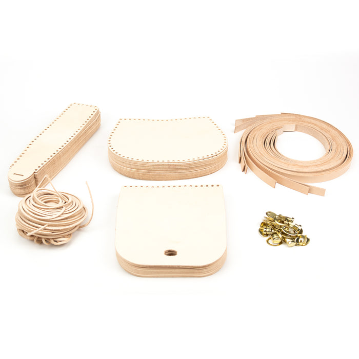 - Product includes leather pieces, hardware, leather lace and instruction.