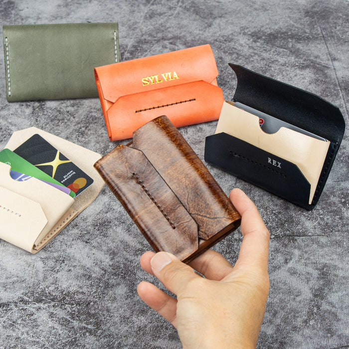 Create your own slim leather card case with this easy kit. The fold-and-tuck closure keeps it secure, while minimal stitching holds the shape. Made from Italian vegetable-tanned leather, perfect for personalizing with stamps or dye. Holds cards and bills—simple, practical, and great for gifts.