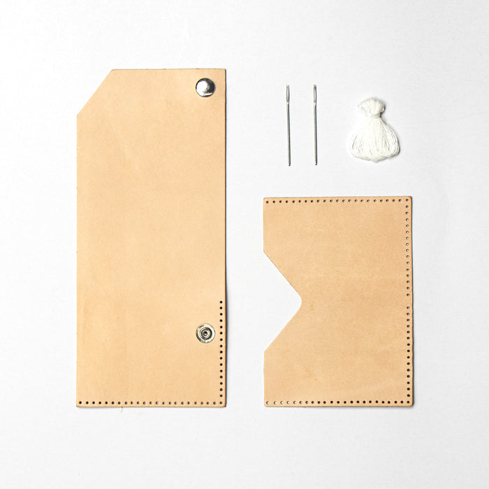 - Product includes leather pieces, pre-installed snap, needles, thread and instruction.