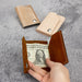 A sleek tri-fold wallet featuring a dedicated card pocket and a bill compartment. When you open it, the bills unfold neatly, with the card case placed conveniently on the right side. Simple, practical, and compact!
