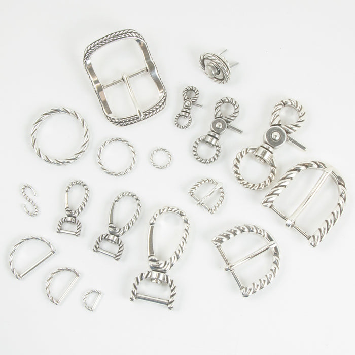 Authentic rope style hardware, gives you a sophisticated yet relaxed nautical appeal. The complete line of rope buckles, rings, dees, snaps and clasps, perfect for applications like handbags, belts, straps, bracelets and more.