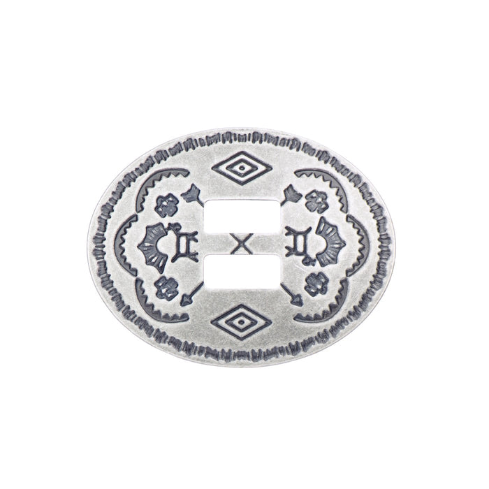 Southwest inspired slotted conchos, can be easily attached with leather strap through the center slots.