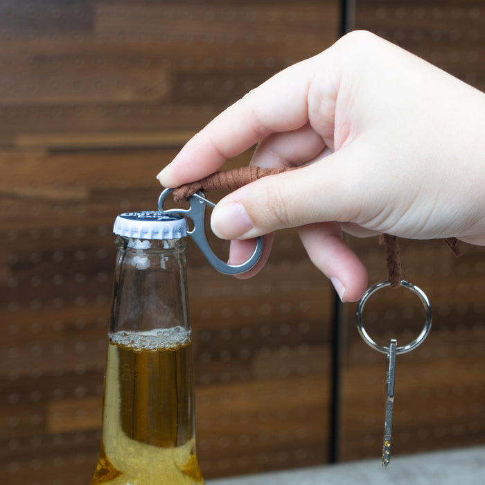 Constructed from premium stainless steel, this carabiner is both scratch-resistant and rust-proof. It includes a bottle opener to help you crack open your drink on the go.