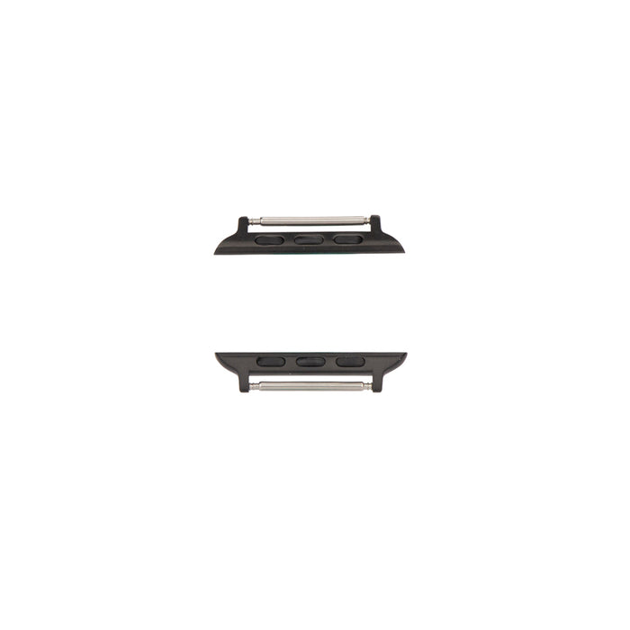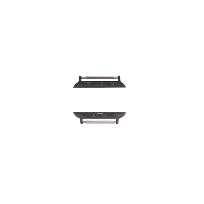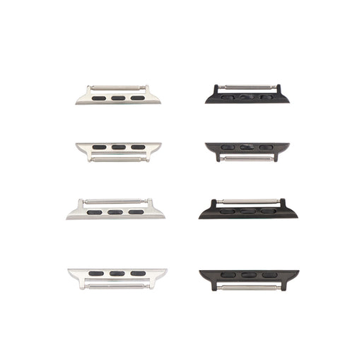 Small and large spring bar watch band adapters with spring bar for Apple Watch. Durable stainless steel in both brushed finish and black. Suitable for 20mm (3/4") and 22mm (7/8") strap widths.